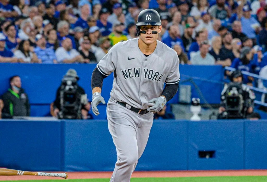 Anthony Rizzo crushed a grand slam to cap off an eight-run frame as the Yankees ran away with a 12-3 win over the Blue Jays in the series opener at Rogers Centre.