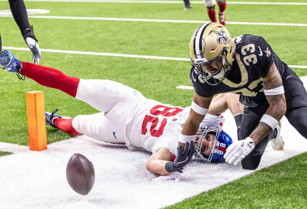 But he Giants had turnovers in virtually every possible way — gift fumbles, bad-idea interceptions — and could only watch as the Saints ran up five straight scores and 23 straight points.