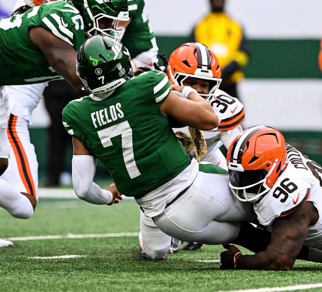 Fueled by two game-changing special teams plays, a season-high 6-sack performance and some fourth quarter magic from RB Breece Hall, the New York Jets (2-7) topped the Cleveland Browns (2-7) on a rainy Sunday at MetLife Stadium for their second straight victory, winning 27-20.
