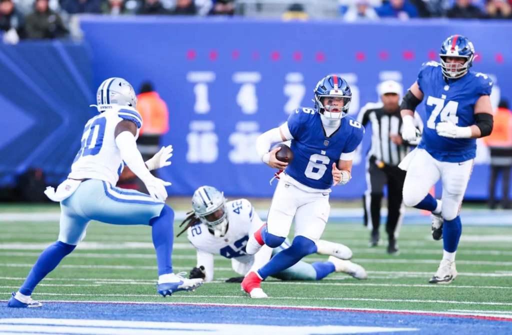 The Giants outgained the Cowboys 380 to 286.Tyrone Tracy rushed for 103 yards, the Giants’ first 100-yard rusher since he did it in Week 10 of the 2024 season.