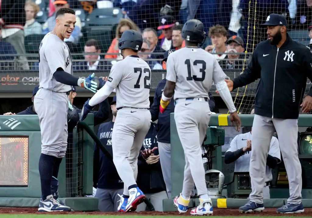 Facing Giants ace Logan Webb, the Yankees pounced in the second inning, with six straight hits to take a 5-0 lead. Trent Grisham, playing his first game since returning to the team on a qualifying offer last winter, capped the rally with a triple.